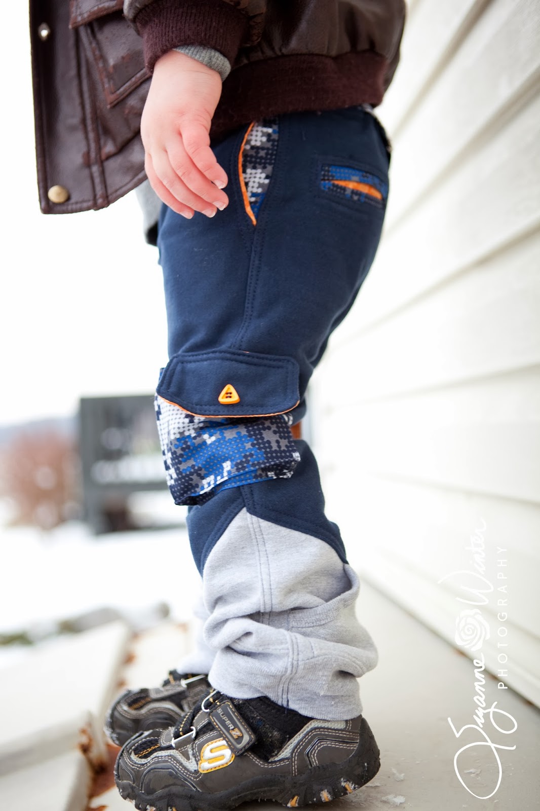 Now, when I originally chose which month to sign up for, I purposefully made a b-line for these pants.  Not only did I desperately want to sew up a pattern by Shwin&Shwin (which did not disappoint), but I have a child with a rather interesting physique.  You know at the begining of the movie 'The Blind Side'   When Leigh Anne Tuohy is describing the perfect Left Tackle... The ideal left tackle is big, but a lot of people are big. He's wide in the butt and massive in the thighs. He has long arms, giant hands and feet as quick as a hiccup.  This is my son B to a T... and as a two and a half year old, it is making it impossible to find pants in the stores that fit.  Add to that build, the fact that he still wears diapers and any chance of a miracle just flew out the window.  I will cherish my son, and his build - and I will make sure he has the coolest pants on earth - cause his mama can SEW!